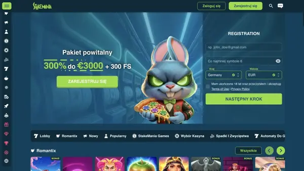 Witamy w StakeMania Casino, uruchomionym w 2024 roku przez Casiworx N.V. Stawiamy na prostą stronę, jasne kroki dotyczące bonusów oraz kasę przygotowaną pod szybkie wpłaty w PLN. StakeMania dobrze sprawdza się u nowych graczy, którzy chcą łatwej nawigacji, jak i u doświadczonych, którzy zwracają uwagę na dostawców oraz szybkość płatności. Obsługujemy PLN i popularne metody, takie jak BLIK, a kluczowe warunki pokazujemy jeszcze przed odebraniem oferty. Nasza platforma jest po angielsku, a wsparcie jest dostępne przez czat na żywo i e-mail.